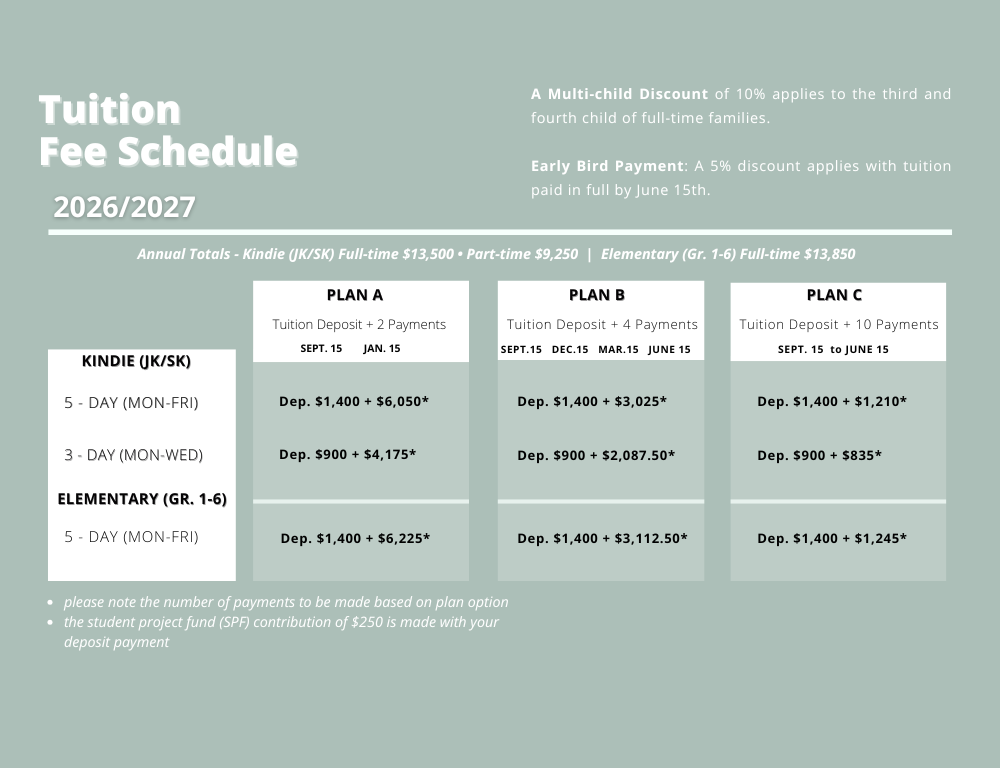 All plans include a non-refundable deposit, due upon application acceptance, along with a yearly Student Project Fund (SPF) contribution of $250.00.